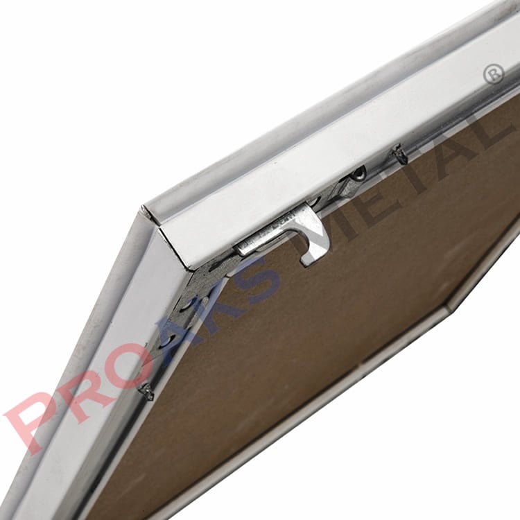 In suspended ceiling and partition wall systems, electrical panels, fuse boxes, water valves, etc. located in the space between the wall and the ceiling. It is the building material that allows access to the plumbing system that needs to be accessed. Intervention covers consist of an inner and outer frame. The frames are made of aluminum raw material and are electrostatic powder coated. Moving and fixed materials on the system It is produced from specially coated, corrosion-resistant galvanized raw material.