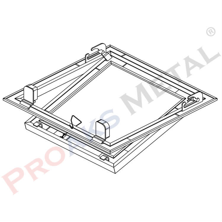 In suspended ceiling and partition wall systems, electrical panels, fuse boxes, water valves, etc. located in the space between the wall and the ceiling. It is the building material that allows access to the plumbing system that needs to be accessed. Intervention covers consist of an inner and outer frame. The frames are made of aluminum raw material and are electrostatic powder coated. Moving and fixed materials on the system It is produced from specially coated, corrosion-resistant galvanized raw material.