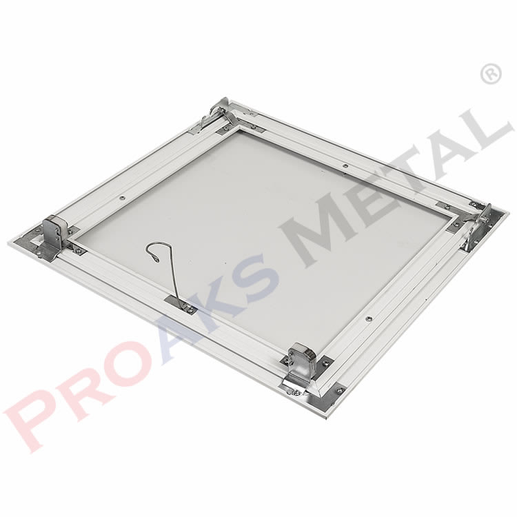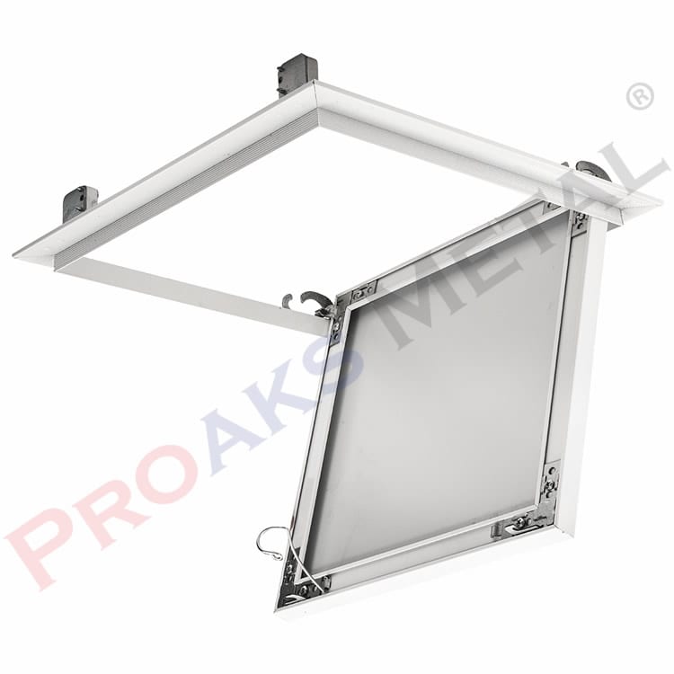 In suspended ceiling and partition wall systems, electrical panels, fuse boxes, water valves, etc. located in the space between the wall and the ceiling. It is the building material that allows access to the plumbing system that needs to be accessed. Intervention covers consist of an inner and outer frame. The frames are made of aluminum raw material and are electrostatic powder coated. Moving and fixed materials on the system It is produced from specially coated, corrosion-resistant galvanized raw material.