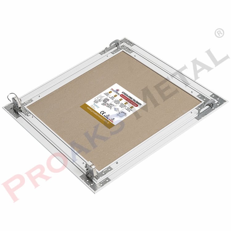 In suspended ceiling and partition wall systems, electrical panels, fuse boxes, water valves, etc. located in the space between the wall and the ceiling. It is the building material that allows access to the plumbing system that needs to be accessed. Intervention covers consist of an inner and outer frame. The frames are made of aluminum raw material and are electrostatic powder coated. Moving and fixed materials on the system It is produced from specially coated, corrosion-resistant galvanized raw material.