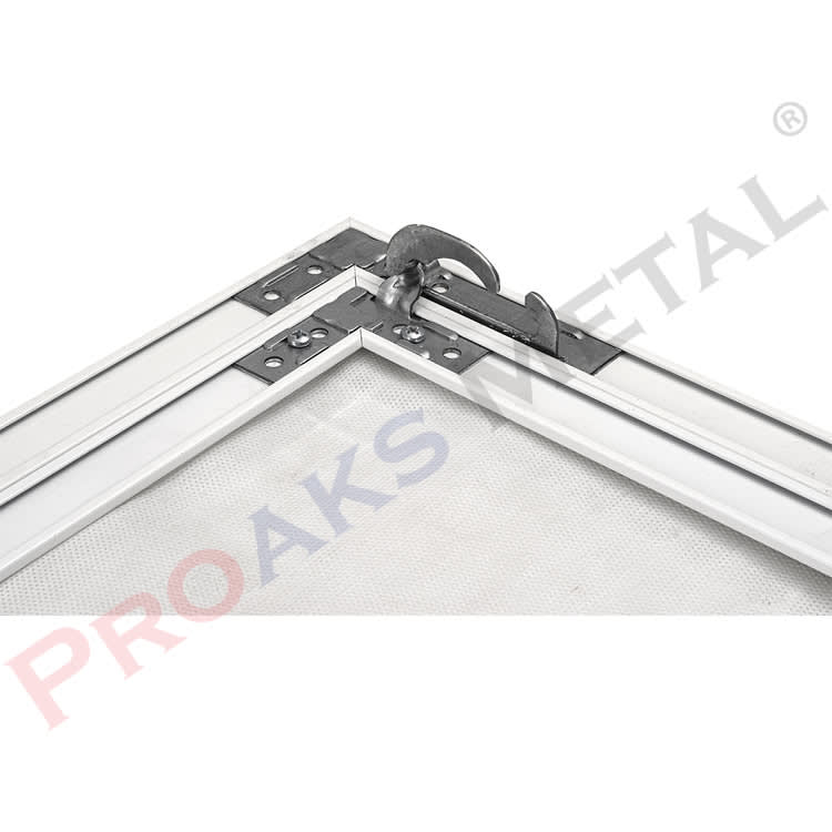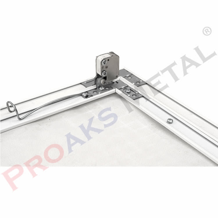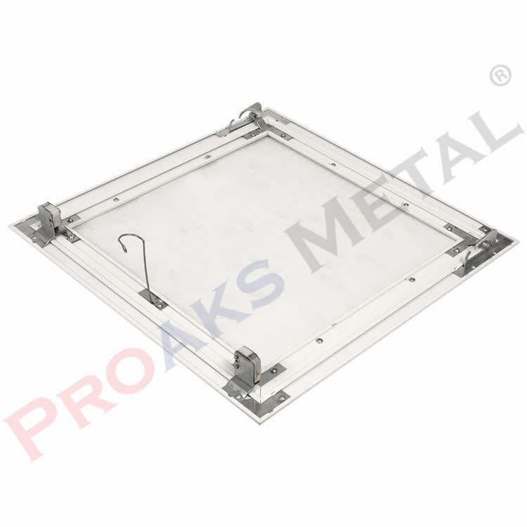 In suspended ceiling and partition wall systems, electrical panels, fuse boxes, water valves, etc. located in the space between the wall and the ceiling. It is the building material that allows access to the plumbing system that needs to be accessed. Intervention covers consist of an inner and outer frame. The frames are made of aluminum raw material and are electrostatic powder coated. Moving and fixed materials on the system It is produced from specially coated, corrosion-resistant galvanized raw material.