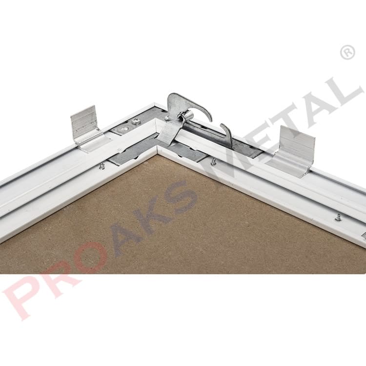 In suspended ceiling and partition wall systems, electrical panels, fuse boxes, water valves, etc. located in the space between the wall and the ceiling. It is the building material that allows access to the plumbing system that needs to be accessed. Intervention covers consist of an inner and outer frame. The frames are made of aluminum raw material and are electrostatic powder coated. Moving and fixed materials on the system It is produced from specially coated, corrosion-resistant galvanized raw material.