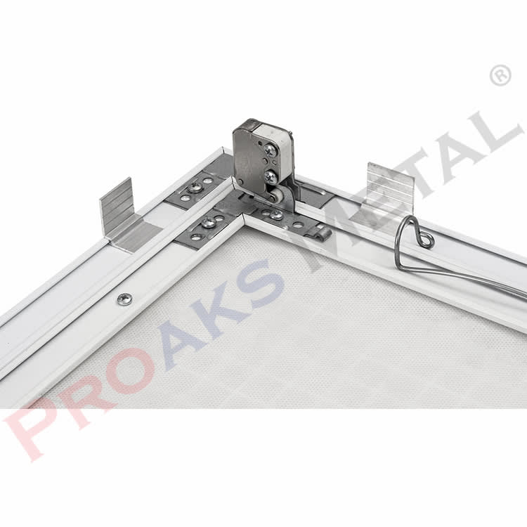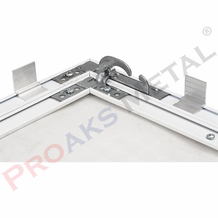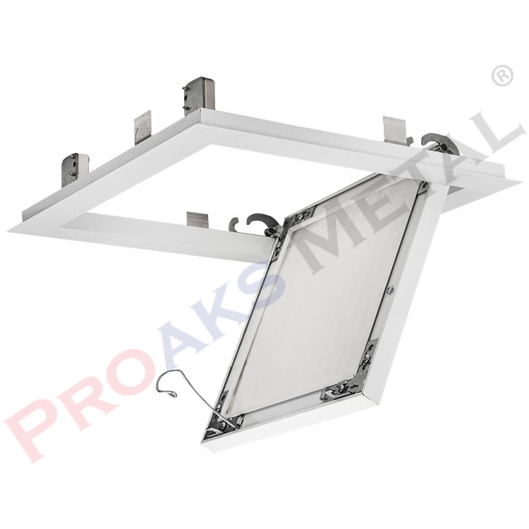 In suspended ceiling and partition wall systems, electrical panels, fuse boxes, water valves, etc. located in the space between the wall and the ceiling. It is the building material that allows access to the plumbing system that needs to be accessed. Intervention covers consist of an inner and outer frame. The frames are made of aluminum raw material and are electrostatic powder coated. Moving and fixed materials on the system It is produced from specially coated, corrosion-resistant galvanized raw material.